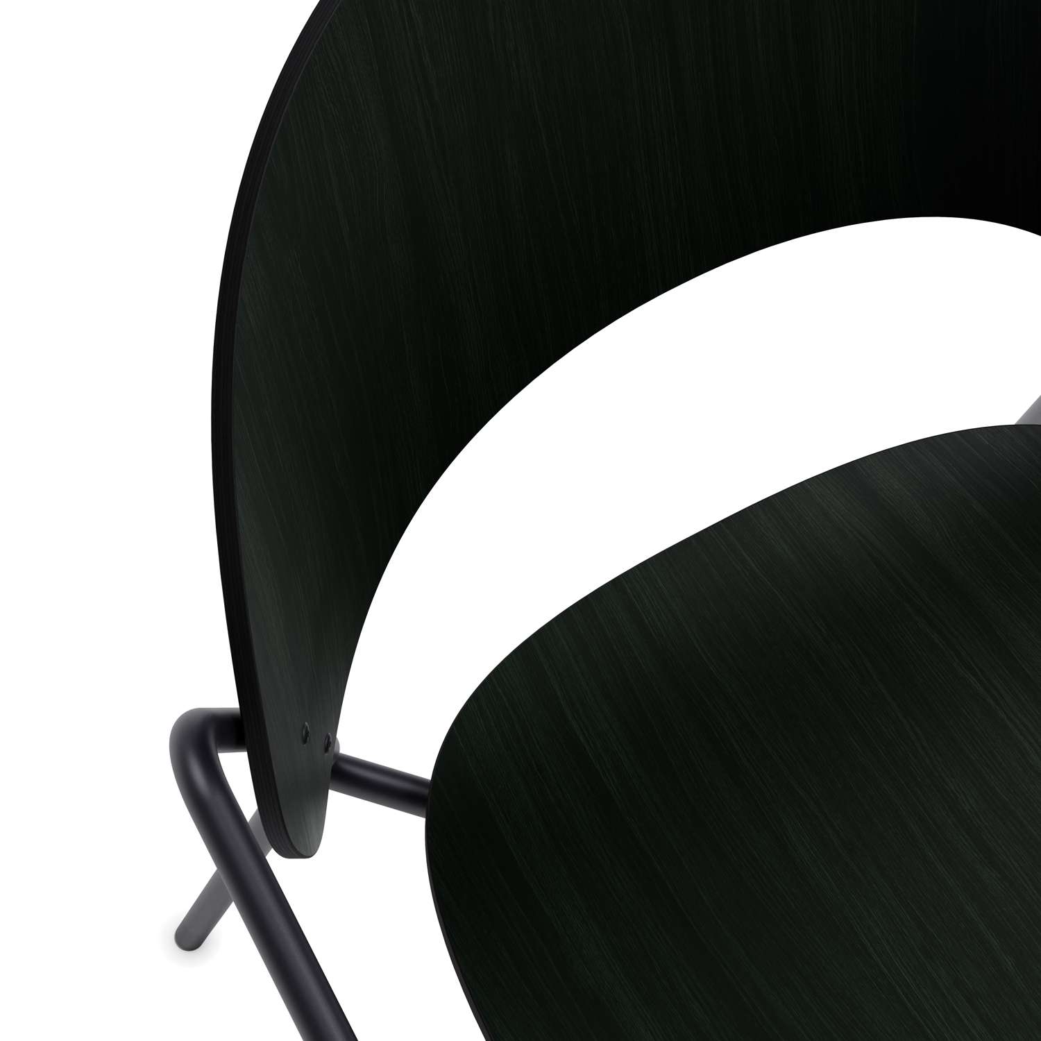 Takket være sin enkle konstruktion har stolen, på trods af sin massive, brede ryg, et let og indbydende udtryk – selv når langbordet eller mødebordet skal forsynes med mange stole. Stolen kan stables, så du altid kan have et par ekstra stole stående uden at de tager unødigt meget plads.