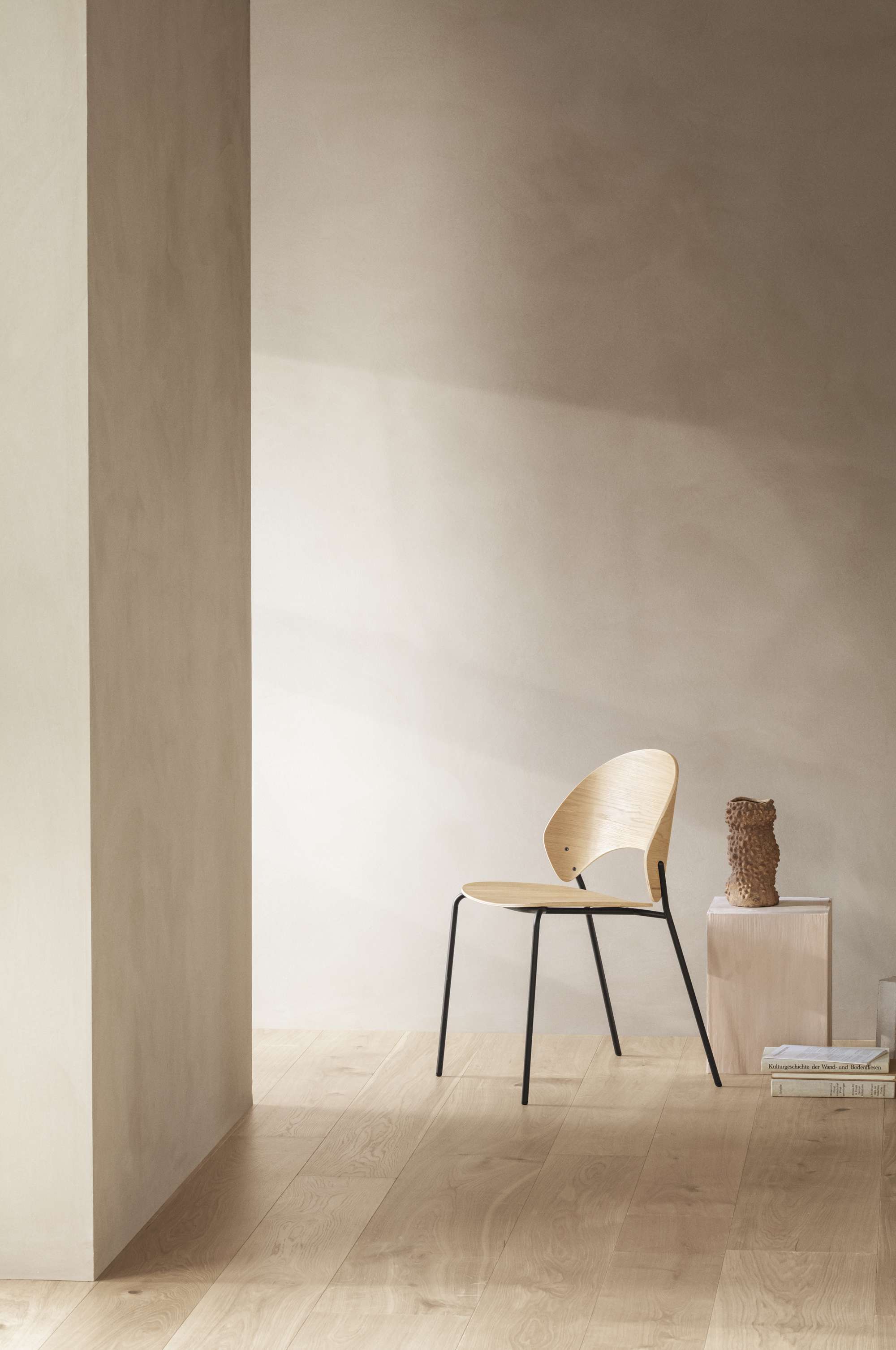 Vi rykker ikke længere ’ind i de bløde’, når middagen er overstået. De åbne køkkener åbner for at blive hængende ved spisebordet og det stiller krav til spisebordsstolen, der får en helt anden opmærksomhed og skal mestre balancen mellem kravene til funktionalitet, komfort og æstetik. Stolen har, som Dosina-muslingen, et let genkendelig, vifteformet silhouet og understreger den høje siddekomfort med sin brede, omfavnende ryg.
