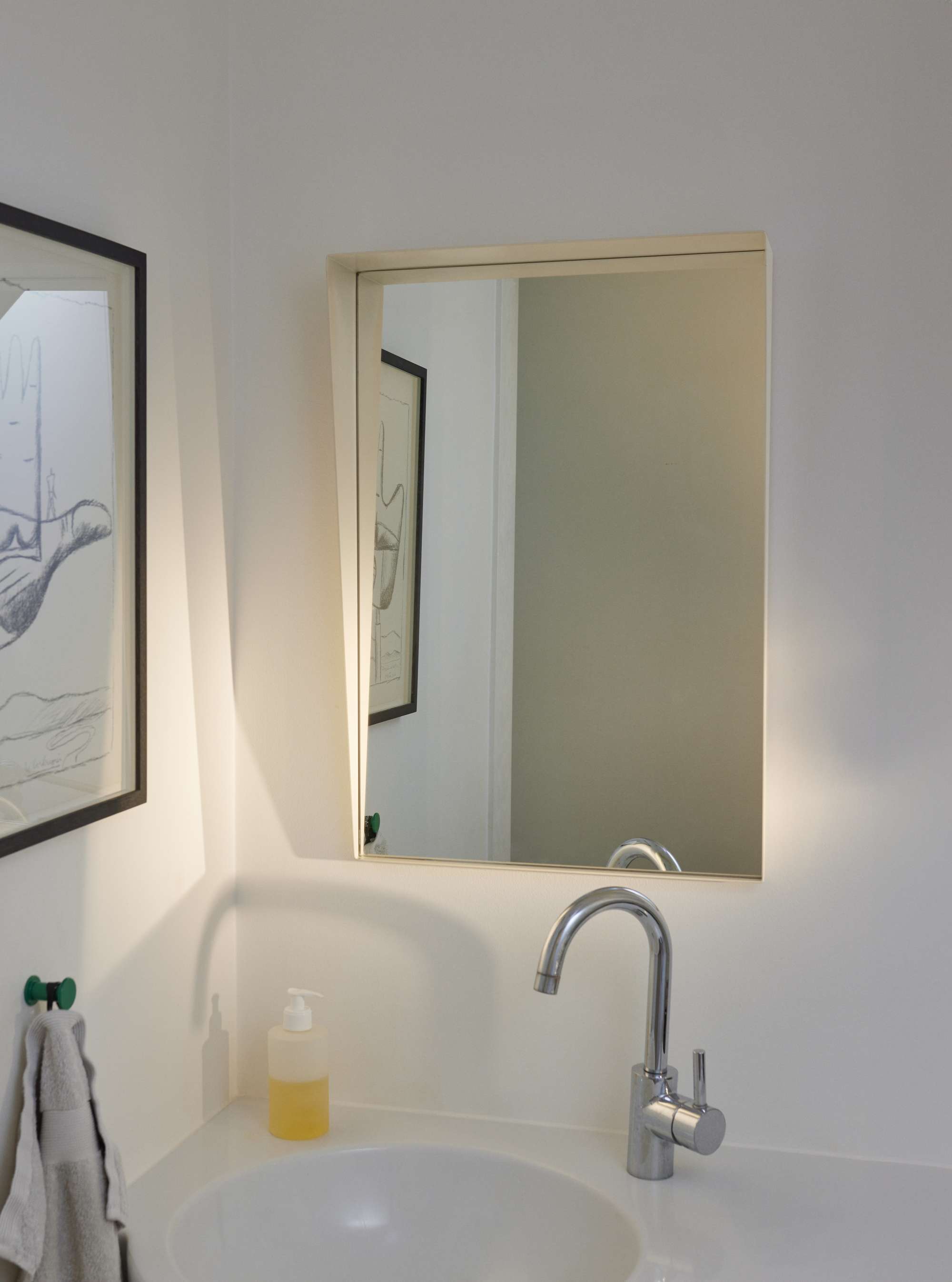 The BEAK mirror is a striking fusion of sculptural form and everyday function. Designed by Søren Rose, it features a distinctive, angular frame, mimicking the sharp, pronounced profiles of bird beaks, that serves as both a visual statement and a practical ledge. Depending on how it’s mounted, the mirror transforms in both appearance and utility. Positioned vertically, it acts as a floating shelf, providing a storage solution for keys, bathroom essentials, or decorative objects. Mounted horizontally, it expands spatial perception, reflecting more light and making a room feel brighter and more expansive. The BEAK collection, available in three sizes, adds depth and dimension to any space. Whether in an entryway, bathroom, living room, or workspace, its bold silhouette adds a unique flair that complements both modern and classic interiors. Crafted from wet-lacquered steel, the BEAK mirror comes in two colours: Fig Purple and ivory.