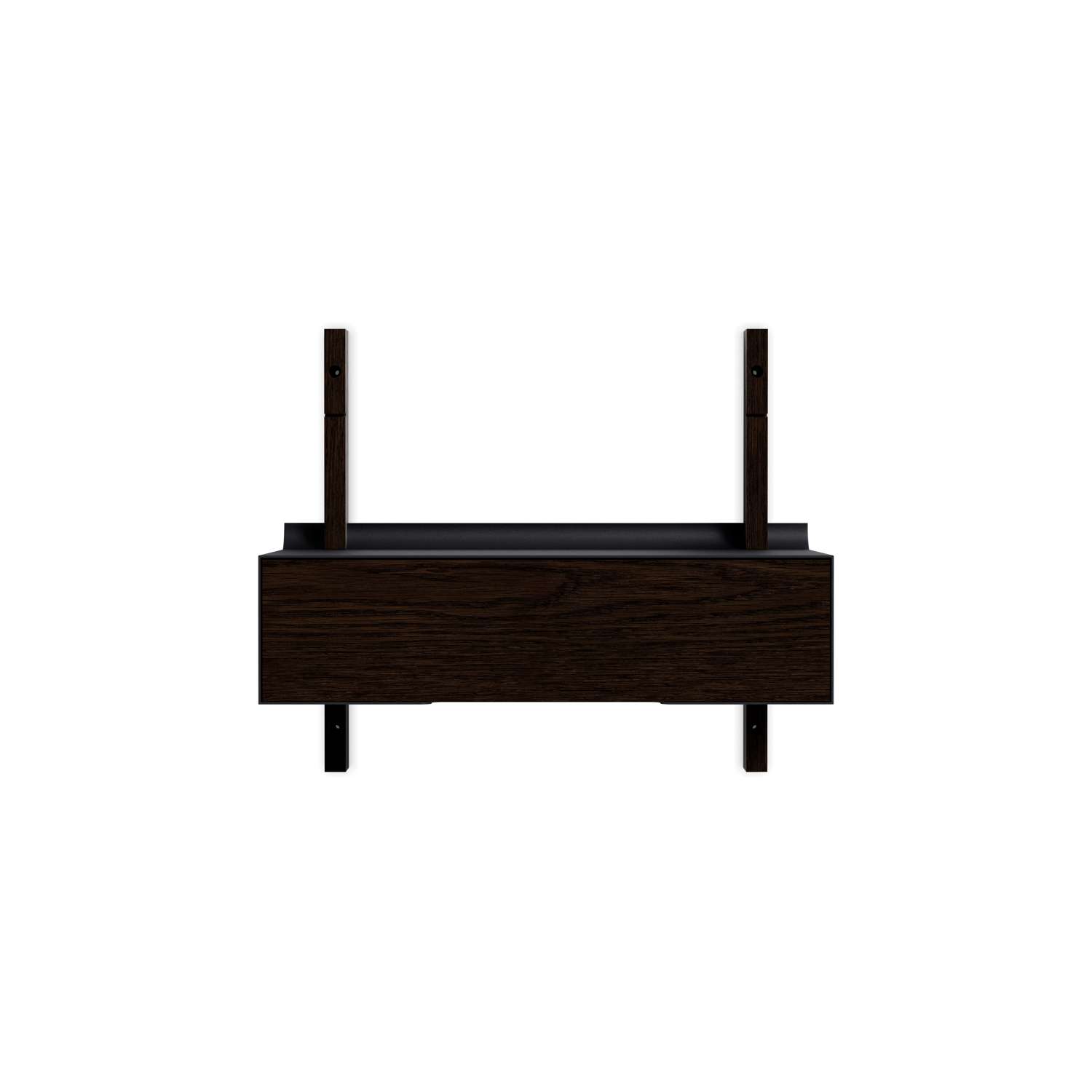 The SMILE single drawer (50 cm) offers a stylish and space-saving storage solution. An integrated drawer provides discreet storage for everyday essentials, while its floating, wall-mounted design keeps the space clean and uncluttered. Crafted from natural or smoked oak with powder-coated steel, it blends minimalist aesthetics with practical functionality—ideal for modern interiors.