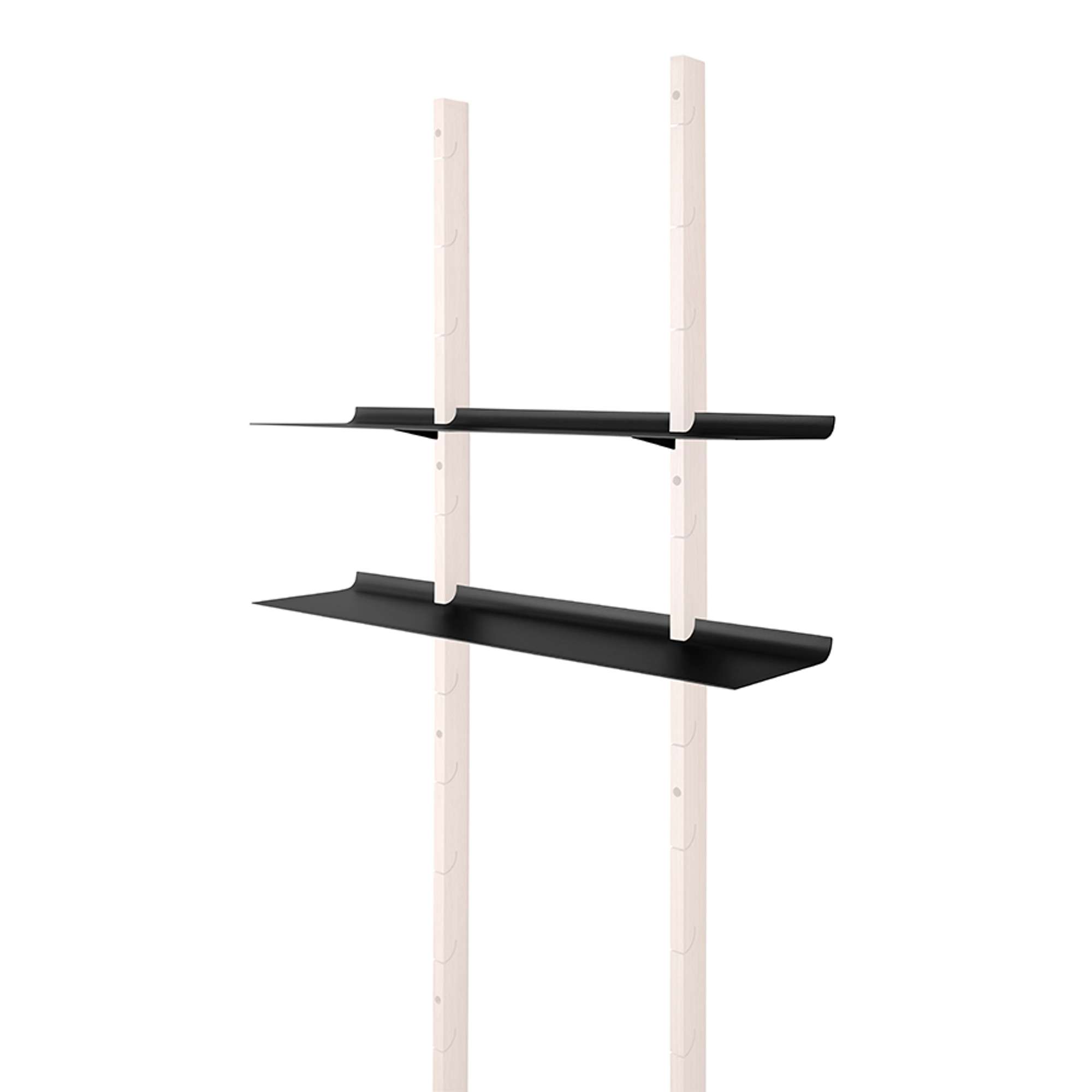 The shelves have an upward curving back edge to ensure that books and other objects do not rub against the wall.