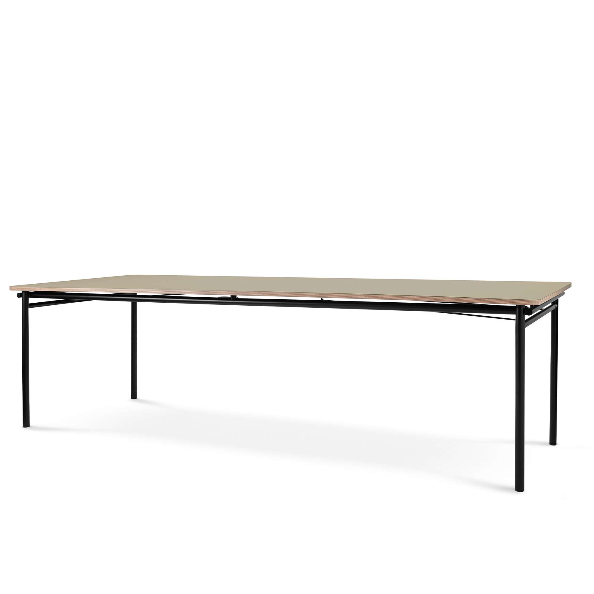 Taffel is made of sturdy and durable materials, yet still retains a light and modern feel. The plywood tabletop is covered in linoleum, an organic, natural material that is both beautiful and practical.